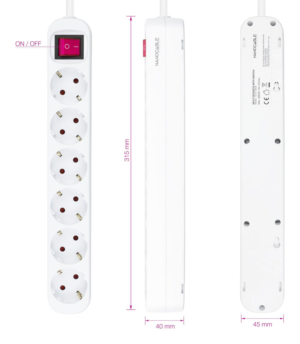 Nanocable 10.37.0006 base múltiple 1,4 m 6 salidas AC Interior Blanco