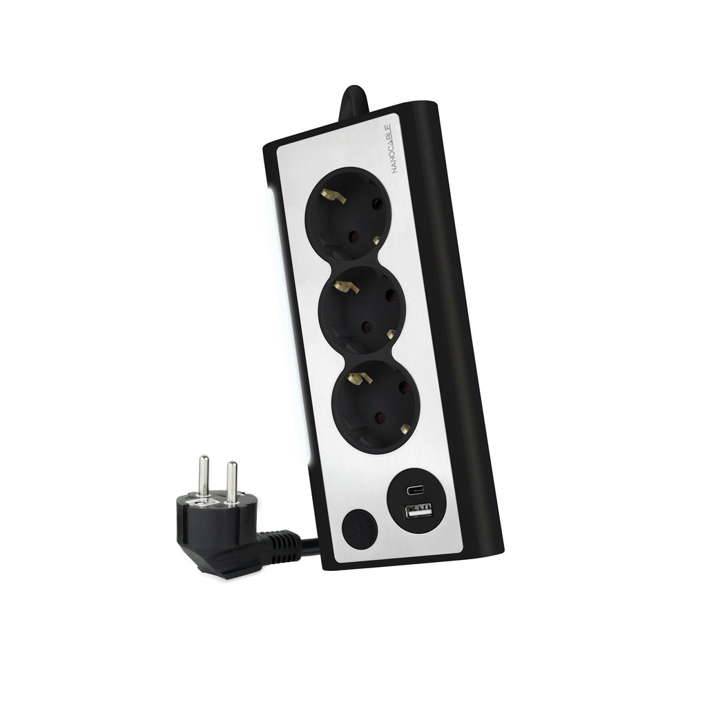 Nanocable 10.37.0013-BK base múltiple 1,5 m 3 salidas AC Interior Aluminio, Negro