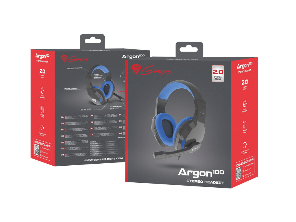 GENESIS ARGON 100, Alámbrico, Juego, 20 - 20000 Hz, Auriculares, Negro, Azul