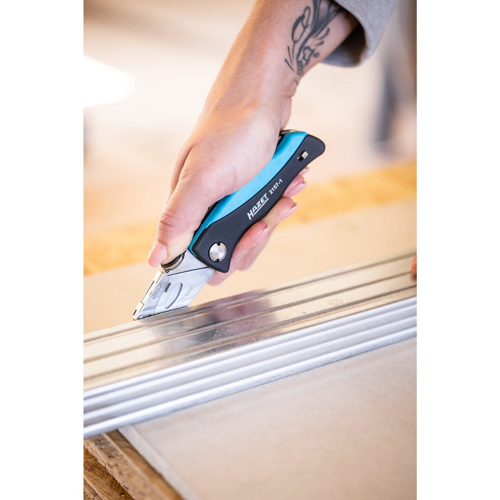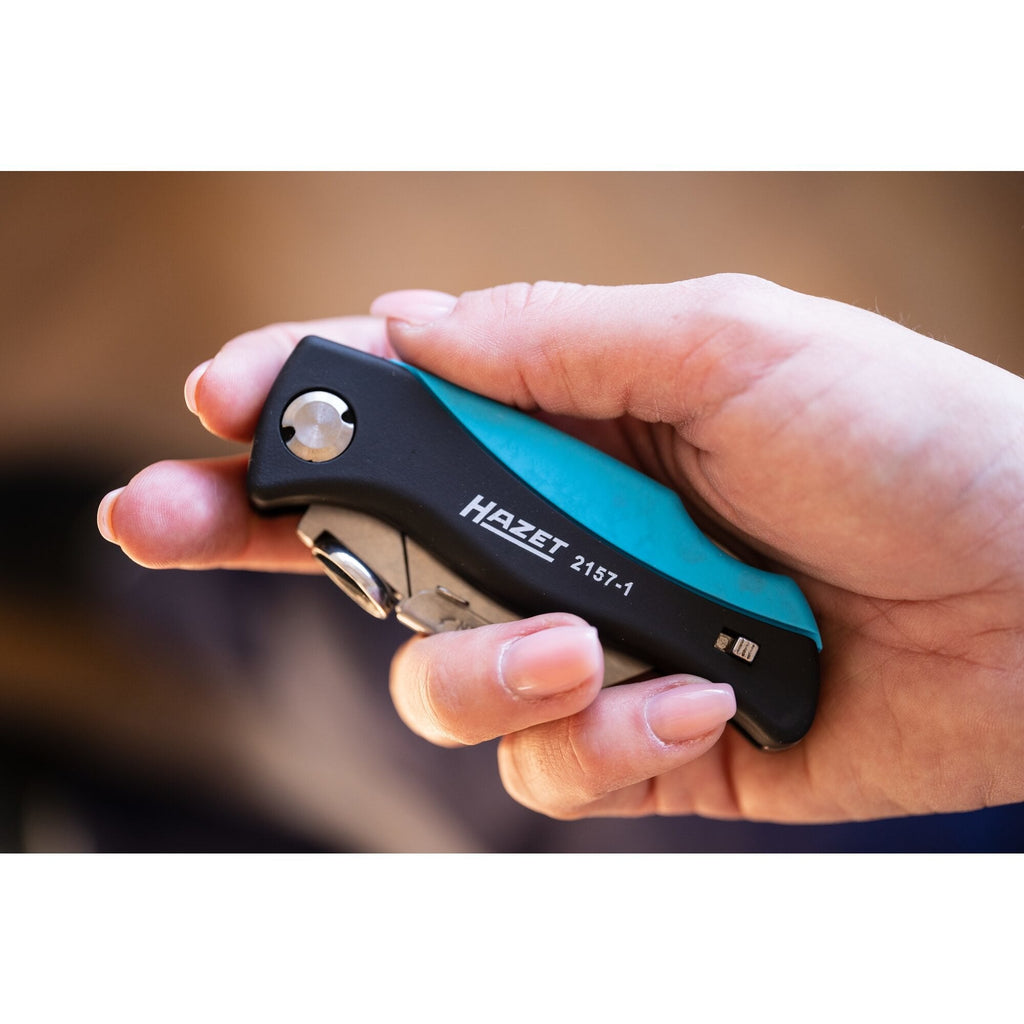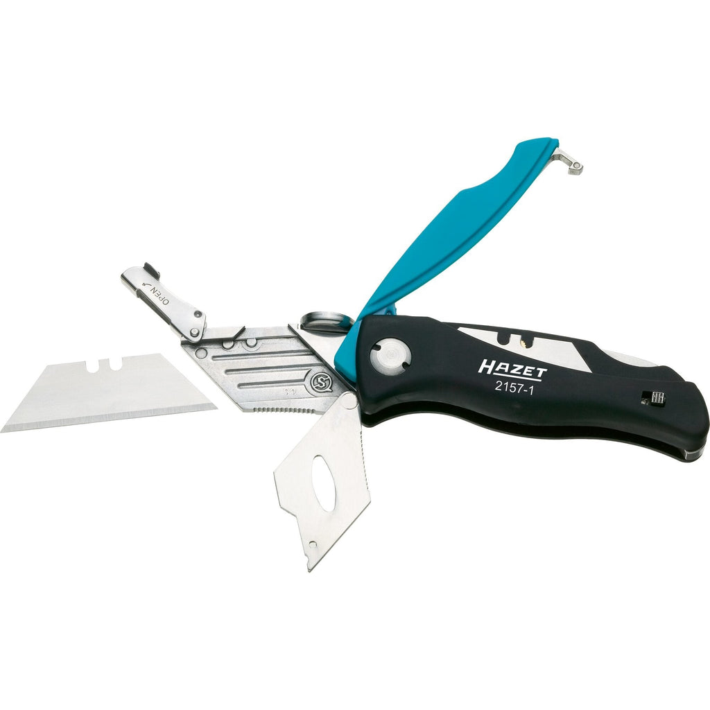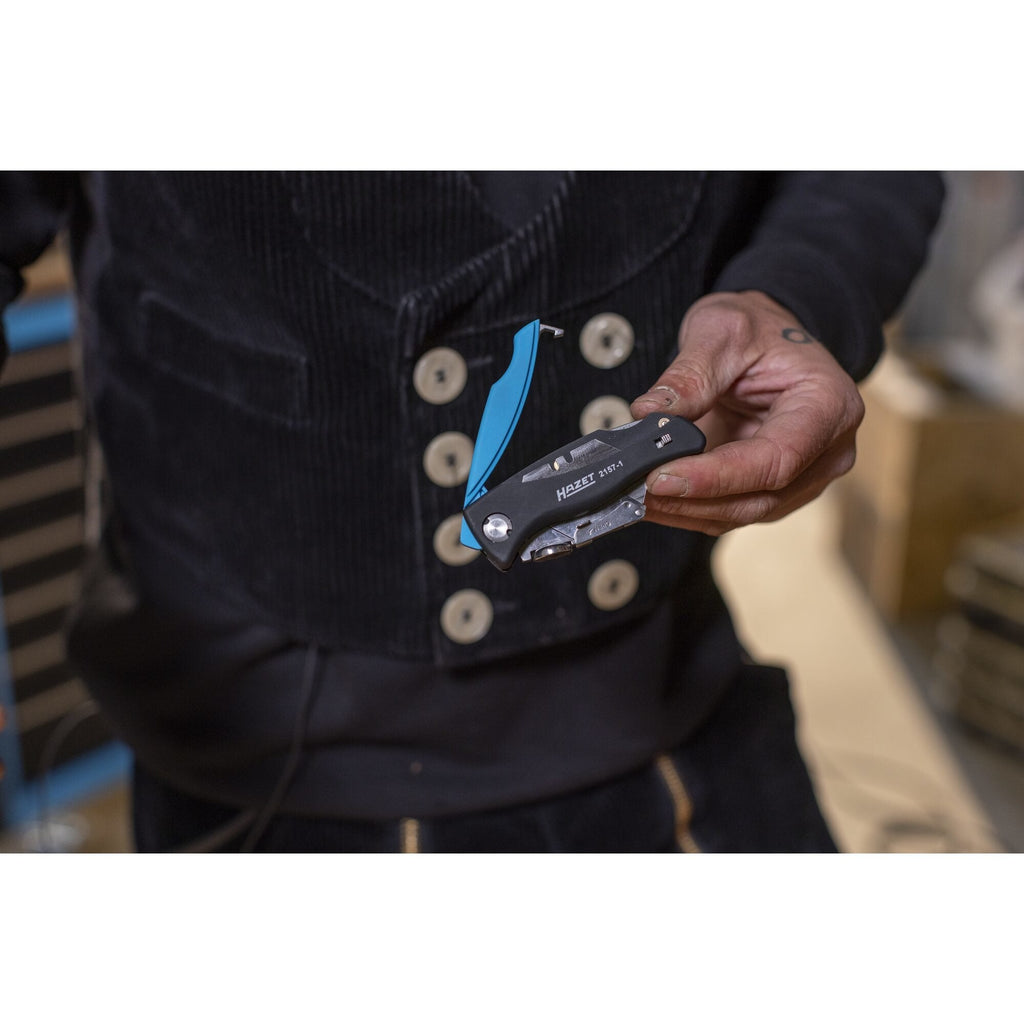 HAZET 2157-1, Navaja con hoja bloqueable, ABS sintéticos, Negro, Azul, 16 cm, 170 g