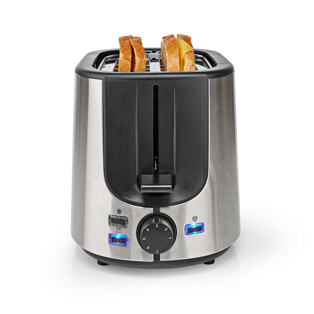 - Tostadora de 1000 W apta para 2 rebanadas de pan (10 x 10 cm)