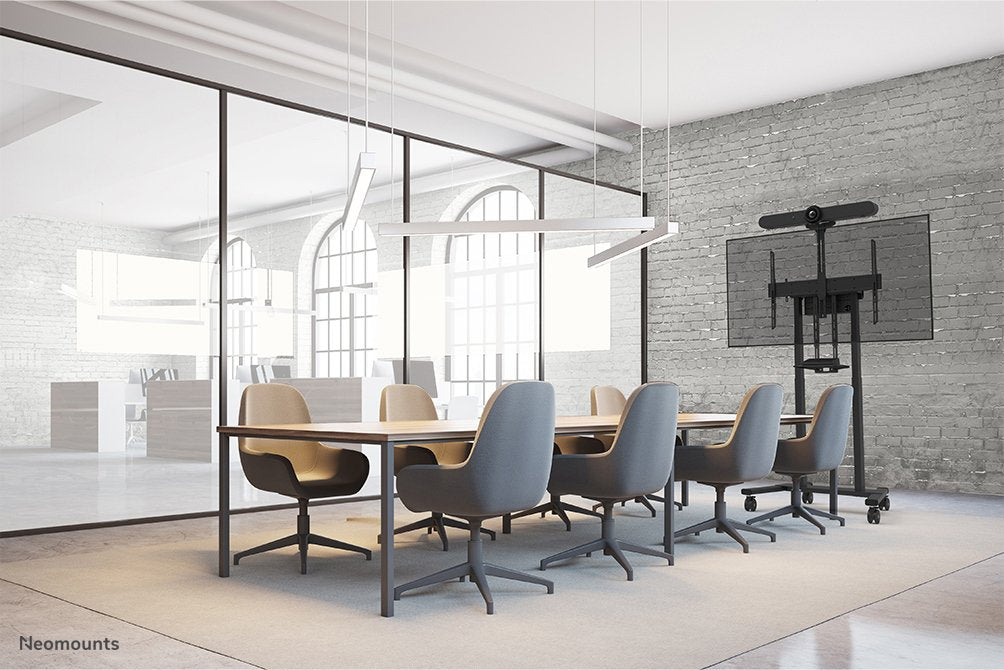 El Neomounts AFL-875BL1 es un kit de videobar y multimedia opcional para el soporte de suelo móvil FL55-875BL1 y el soporte de pared WL55-875BL1. El kit permite la instalación de un estante de cámara independiente y un estante para dispositivos multimedia en el carro. El estante universal de cámara puede instalarse tanto por encima como por debajo de la pantalla y es ajustable en altura, para adaptarse a la pantalla. Además, el estante de cámara puede montarse tanto en la parte delantera como en la trasera del soporte. El kit incluye un adaptador para la Logitech Rally Bar y la Rally Bar Mini (que también se pueden colocar por encima y por debajo de la pantalla). Además, el estante multimedia universal es adecuado para la instalación de, por ejemplo, el Logitech Tap.