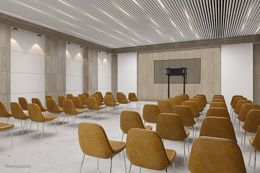 Neomounts FL55-975BL1 mueble y soporte para dispositivo multimedia Negro Panel plano Carro/soporte de suelo con ruedas multimedia