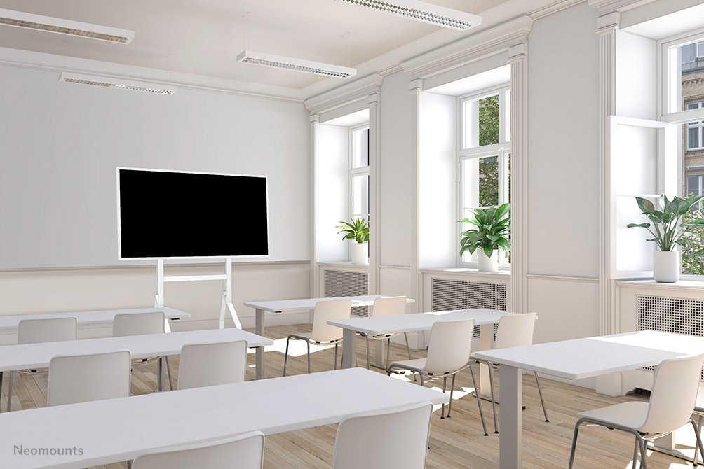 El Neomounts MOVE Go Flip FL50-515WH1 es un carro de primera calidad diseñado específicamente para las pantallas Samsung Flip de 55" y 65". Gracias a su interfaz de rotación rápida y a su diseño de alta calidad, perfectamente adaptado al Samsung Flip, los usuarios pueden mover, ajustar y presentar sin esfuerzo. Es la solución ideal para una colaboración flexible en aulas modernas, salas de reuniones y espacios de trabajo dinámicos.