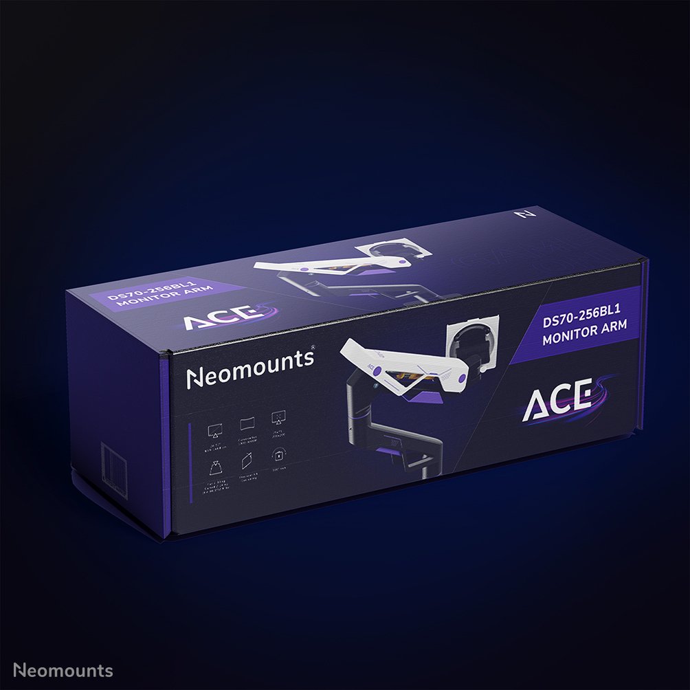 El Neomounts DS70-256BL1 ACE ofrece el máximo rendimiento, comodidad y ergonomía para aquellos jugadores que buscan llevar su instalación al más alto nivel. El brazo soporta tamaños de pantalla de hasta 57", incluyendo modelos ultra anchos como el Samsung Odyssey G9, y está diseñado para manejar sin esfuerzo incluso las configuraciones más ambiciosas. Con una robusta capacidad de carga de 2 a 30 kg (hasta 24 kg para monitores curvos), el ACE garantiza la máxima estabilidad incluso durante las sesiones de juego más intensas.