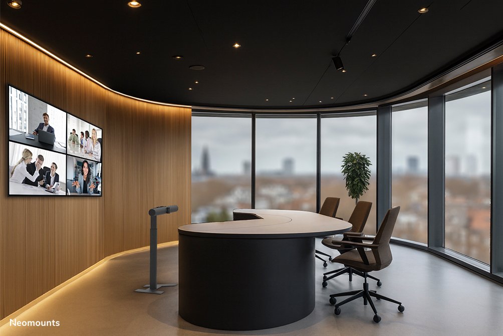 El Neomounts AV80-500BL es un soporte universal para barra de videoconferencia de suelo diseñado para soportar dispositivos de hasta 10 kg, que se puede colocar libremente en cualquier espacio. Con una altura ajustable, ideal para salas de juntas y salas Microsoft Signature Teams con disposición Front Row, garantiza una visibilidad óptima y una presentación profesional.