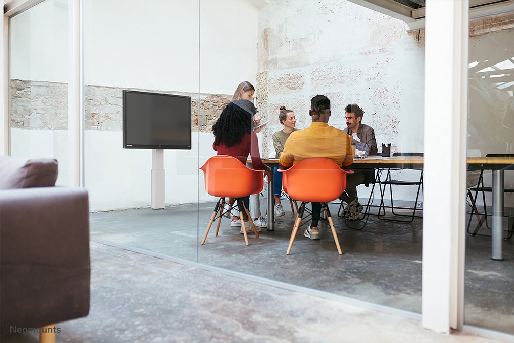 Con el soporte de suelo ajustable en altura automático Neomounts PLASMA-W2500SILVER usted coloca una pantalla plana de gran formato en el suelo y la ancla a la pared con los soportes de pared incluidos (7 cm de distancia). Consiga un posicionamiento óptimo tanto para público de pie como sentado, en cualquier aplicación y en cualquier lugar de su ubicación. Perfecto para utilizar en una sala de clases, una sala de juntas, una sala de presentaciones o una entrada pública.
