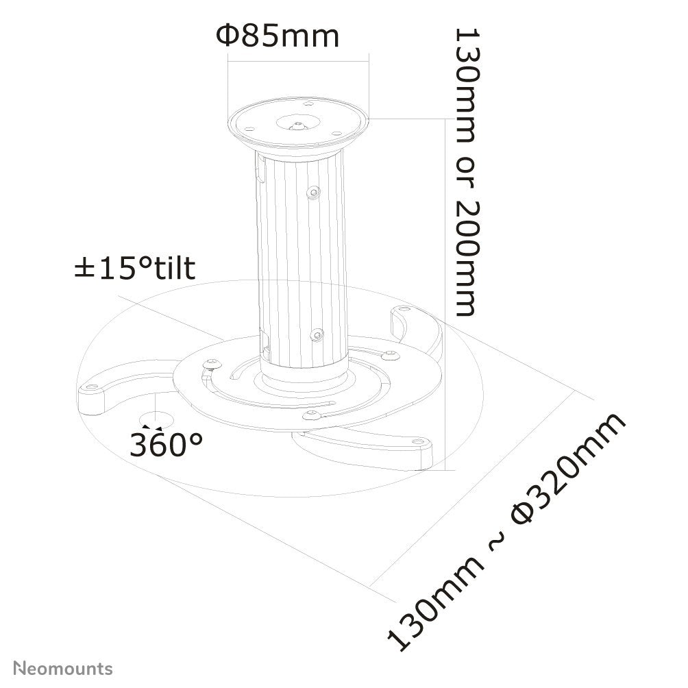 El Neomounts BEAMER-C80 es un soporte de techo universal proyector / proyector para todos los proyectores / proyectores con un patrón de agujeros.