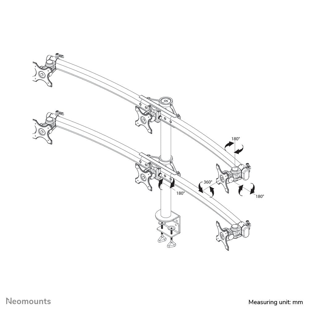 El escritorio Neomounts FPMA-D700D6 le permite conectar 6 pantallas LCD/LED/TFT de hasta 27" (69 cm) en un escritorio.
