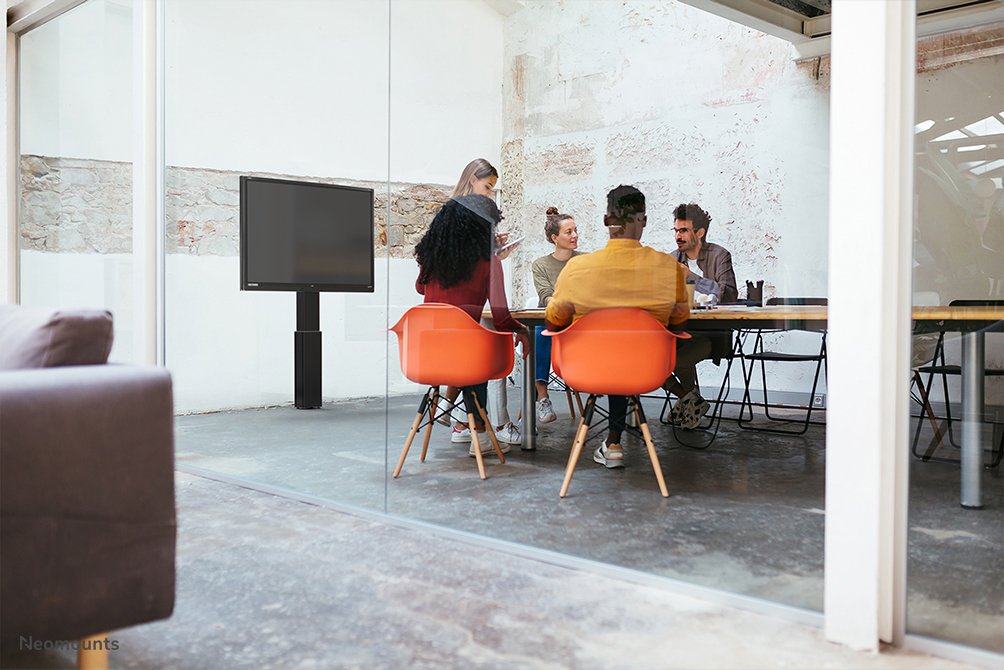 Con el soporte de suelo ajustable en altura automático Neomounts PLASMA-W2500BLACK usted coloca una pantalla plana de gran formato en el suelo y la ancla a la pared con los soportes de pared incluidos (7 cm de distancia). Consiga un posicionamiento óptimo tanto para público de pie como sentado, en cualquier aplicación y en cualquier lugar de su ubicación. Perfecto para utilizar en una sala de clases, una sala de juntas, una sala de presentaciones o una entrada pública.