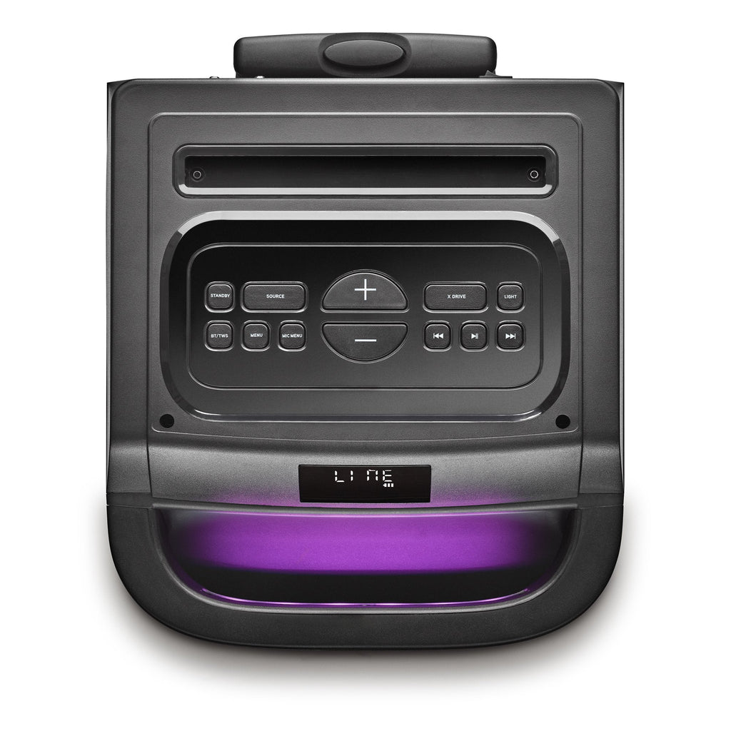 - Tamaño compacto y portátil (incluye ruedas y trolley), proporciona sonido de alta calidad gracias a su gran potencia de salida, 180W RMS