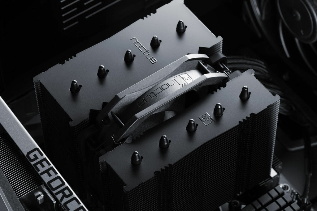 El NH-D12L chromax.black es negro de la cabeza a los pies: al incluir un disipador recubierto en negro, ventilador también negro con paneles anti-vibración del mismo color, tornillos y piezas de montaje negras, combina perfectamente con estructuras totalmente negras y también es muy fácil de integrar en otras combinaciones de colores.
