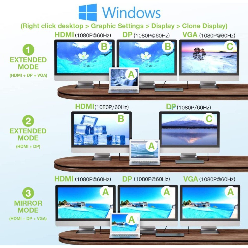 Techly IUSB31C-DOCK12DPHD base para portátil y replicador de puertos Alámbrico USB 3.2 Gen 1 (3.1 Gen 1) Type-C Gris