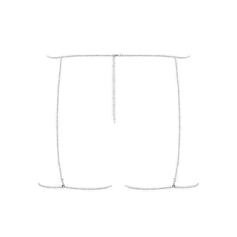 ¡La elección perfecta! Tus piernas serán un punto de luz de ahora en adelante. Intenta calentar la atmósfera antes que tu pareja te vea. Por la mañana dile que una sorpresa muy sexy le aguarda para esta noche Esperará durante todo el día. Por la noche, verá tus increibles piernas que brillarán gracias a este arnés plateado. Te encantará este estilo.