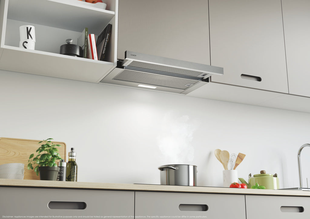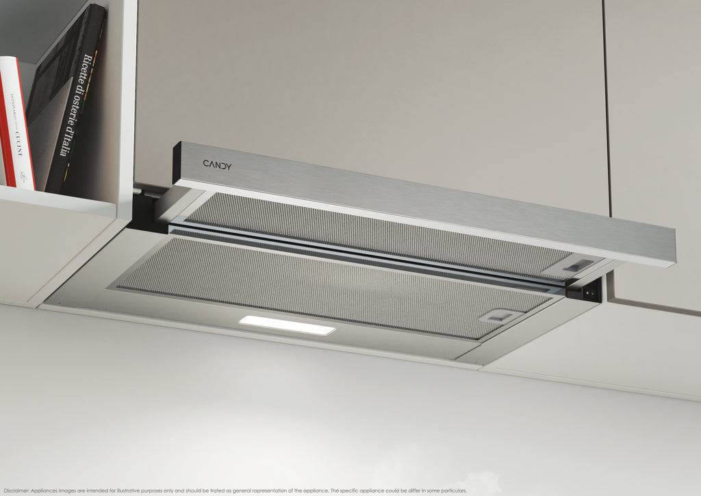 Con un diseño sencillo y máxima funcionalidad, las campanas extractoras Candy son ideales para adaptarse perfectamente a cualquier disposición de la cocina.