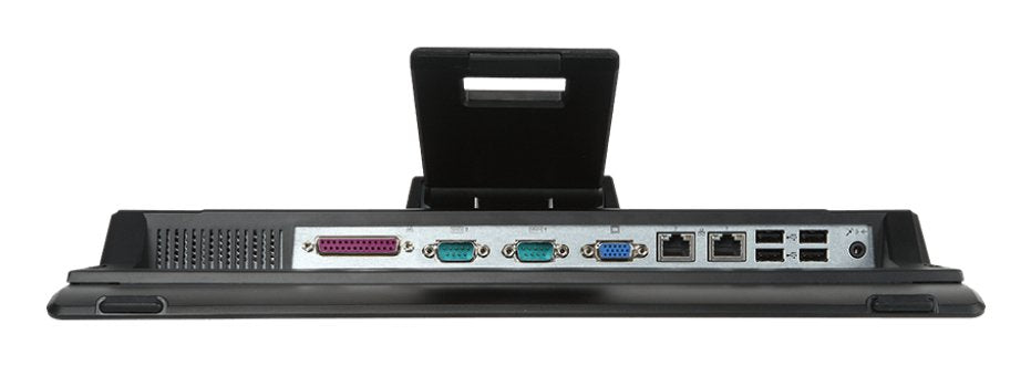 - Dos puertos COM, 6 puertos USB y un puerto de impresora (puerto paralelo) para escáner de códigos de barras, lector de tarjetas de crédito, impresora, cajero automático, etc