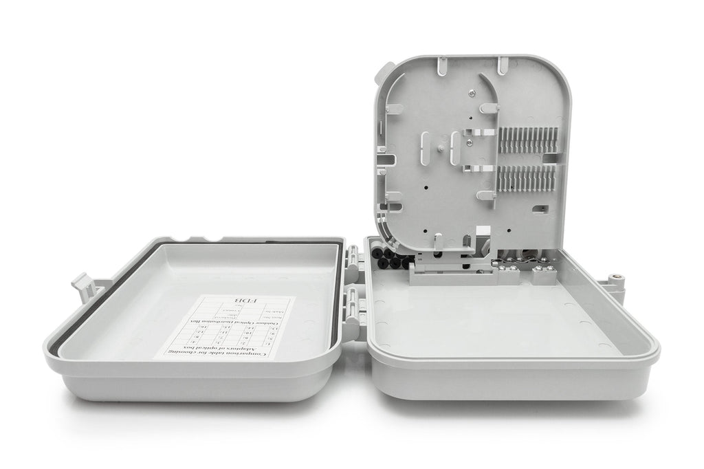 - Soporte para 16 acopladores dúplex LC; casete de empalme para 32 empalmes; bloqueable; reserva de cable enrollable; 2 entradas de cable 12 mm; 16 entradas 5 mm; material de montaje; protección de empalme; IP 65