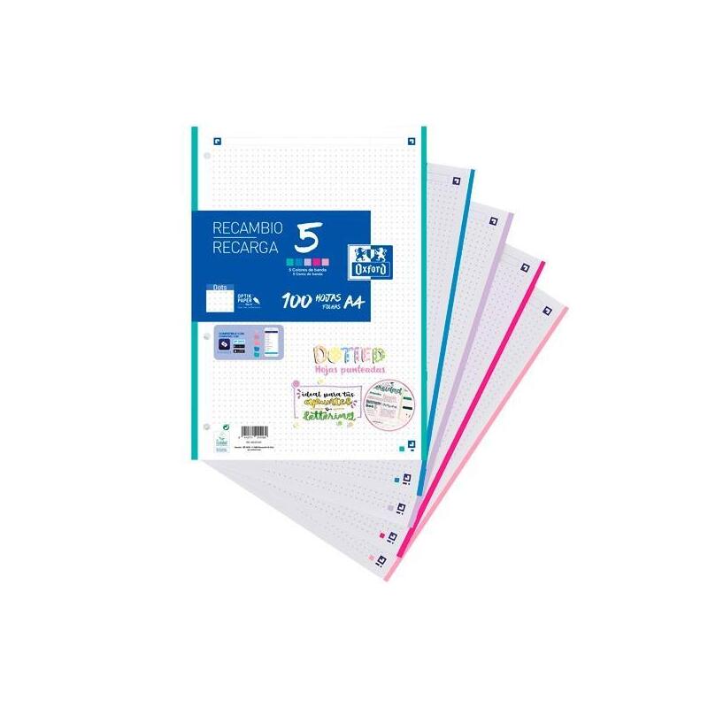 Oxford Recambio Paquete A4 100h Dots 5 Secciones Pastel