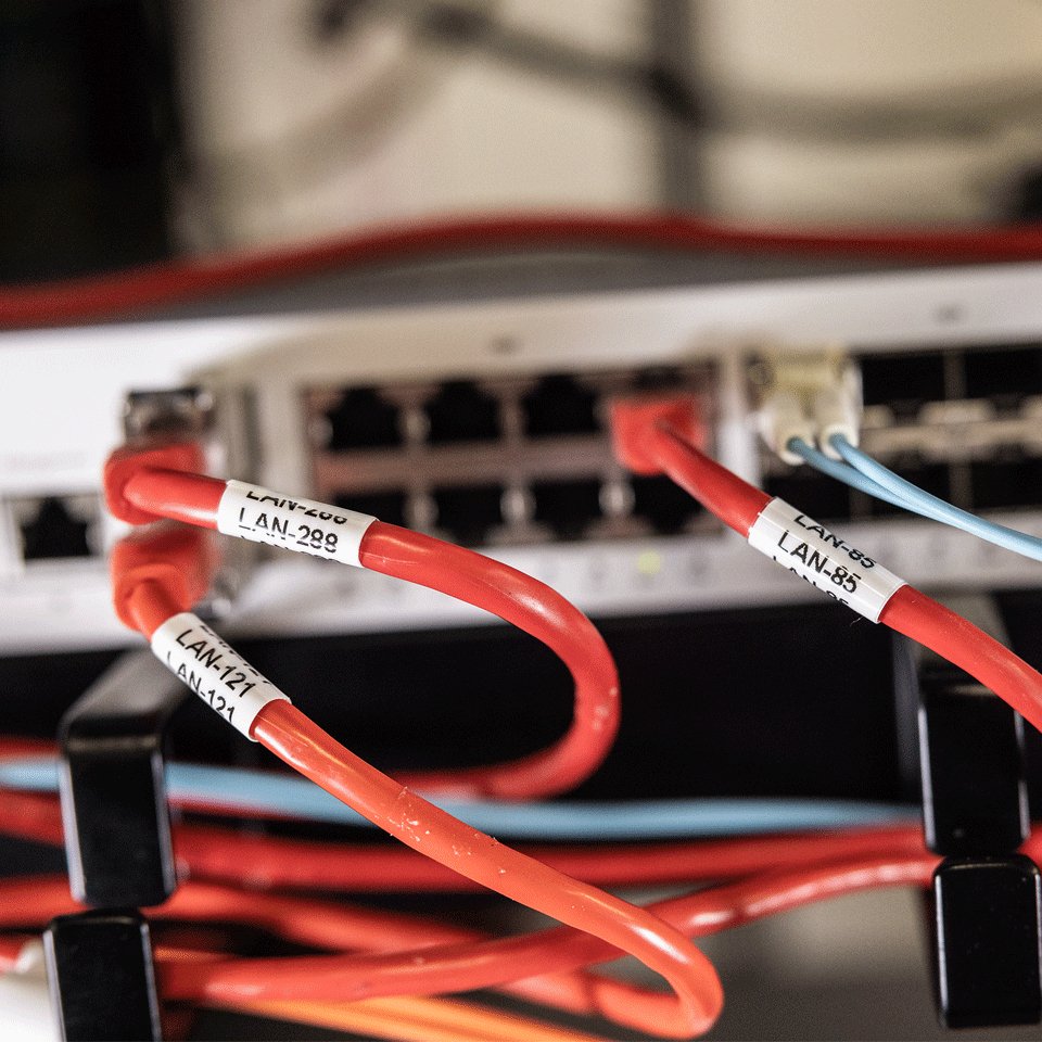 Con la herramienta Pro Label Tool o el software P-touch Editor de Brother, podrás disfrutar de la carga automática de plantillas de etiquetas listas para imprimir para cables, paneles de conexión, placas frontales, unidades de consumo RCD, etiquetas de prueba/inspección/advertencia e identificación de equipos de red desde el servidor en la nube de Brother, lo que significa que siempre estarán actualizadas con las últimas normativas y estándares de cableado.
