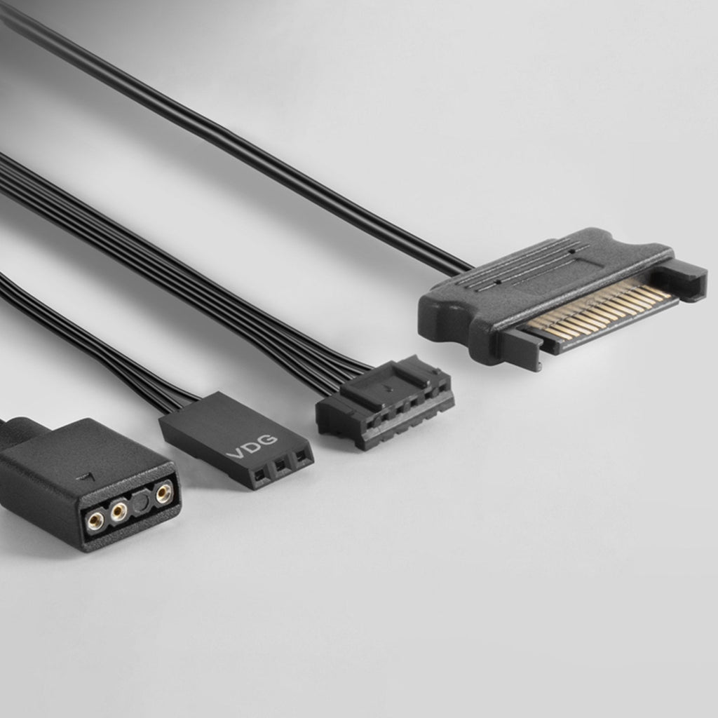 El controlador ARGB más espectacular: cuerpo translúcido iluminado, hasta 220 efectos de iluminación preprogramados, 10 ventiladores ARGB simultáneos, cable para conexión con placas base ARGB...