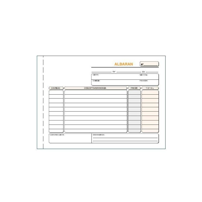 Pack De 5 Unidades Talonario Albaranes Cuarto Apaisado Triplicado Autocopia