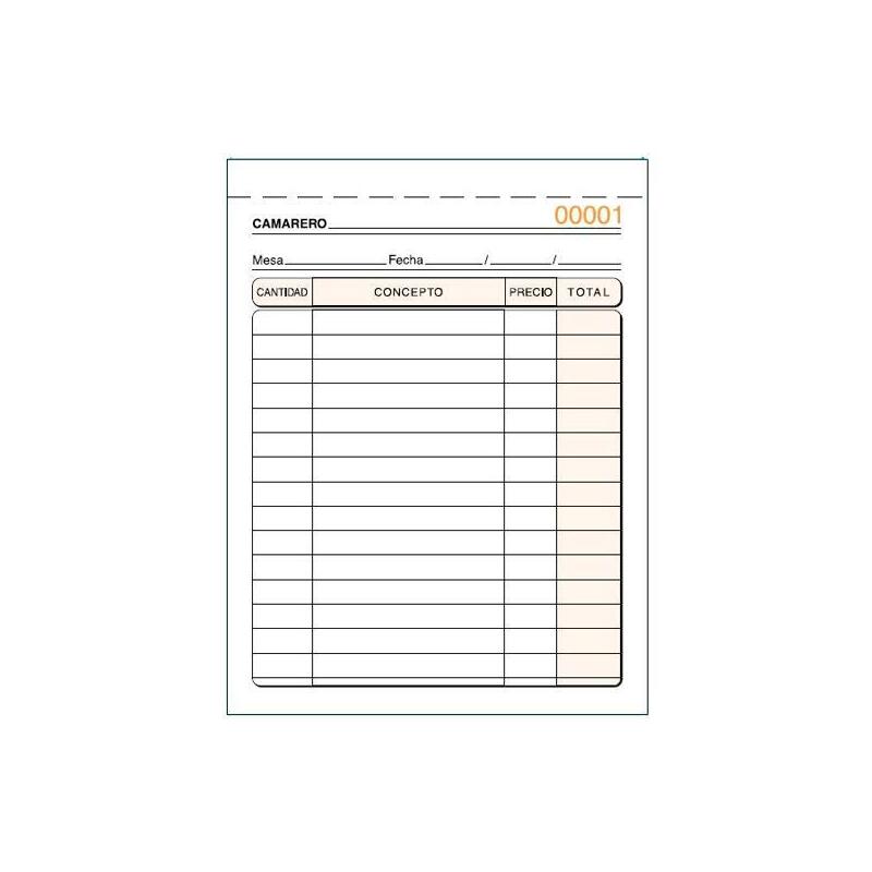 Pack De 5 Unidades Talonario Camareros Octavo Natural Triplicado Autocopia