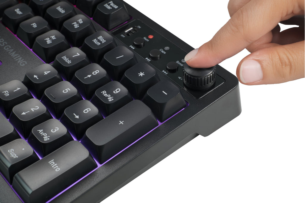 Incluye un dial multimedia y tres botones dedicados para ajustar el volumen, pausar o cambiar de pista rápidamente. Accede a tus funciones multimedia sin interrupciones y con total comodidad.