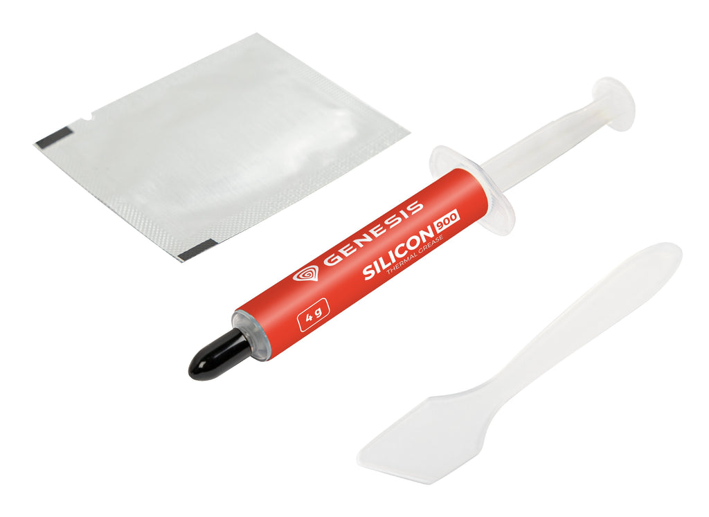 Te presentamos GENESIS Silicio 900: una pasta conductora térmica de alto rendimiento que te ayudará a ganar la desigual batalla contra las temperaturas. No basta con una densidad óptima y unas buenas propiedades de conductividad térmica. En el kit encontrarás un paño humedecido y una espátula para facilitar la aplicación.