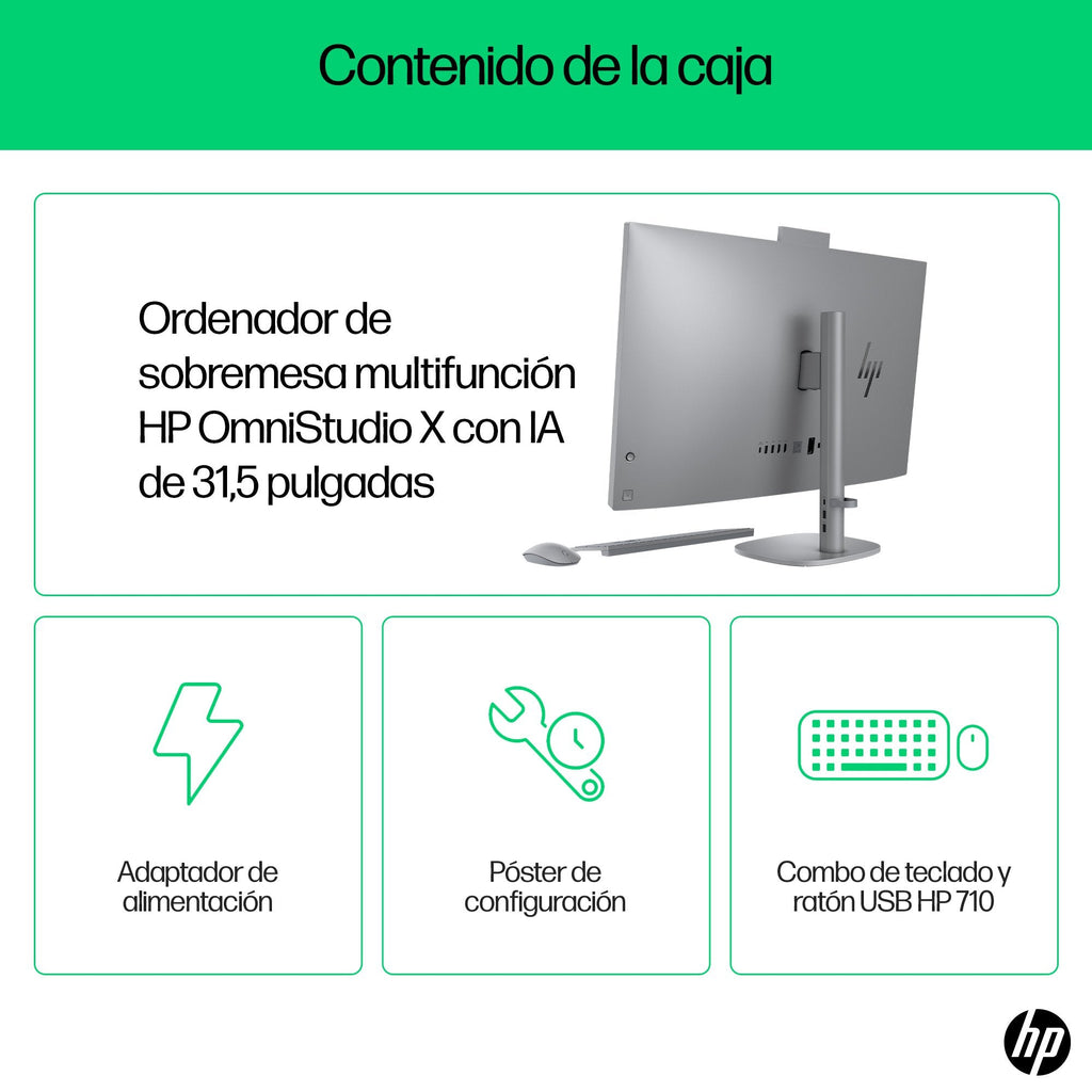 HP OmniStudio X All-in-One 32-c0022ns PC Intel Core Ultra 5 125H 80 cm (31.5") 3840 x 2160 Pixeles PC todo en uno 16 GB DDR5-SDRAM Windows 11 Home Wi-Fi 6E (802.11ax) AI PC Plata