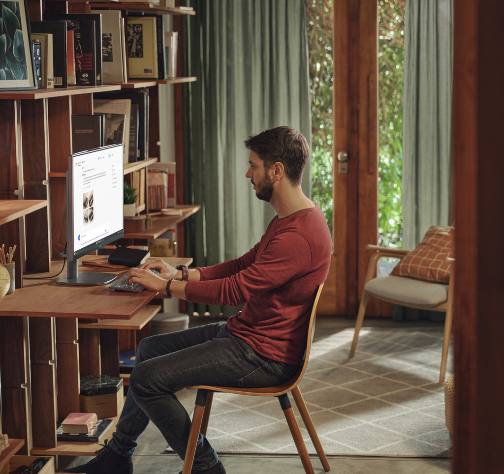 Trabaja o juega sin problemas gracias a una cámara de 5 MP con Windows Studio Effects y un monitor inmersivo y dinámico.