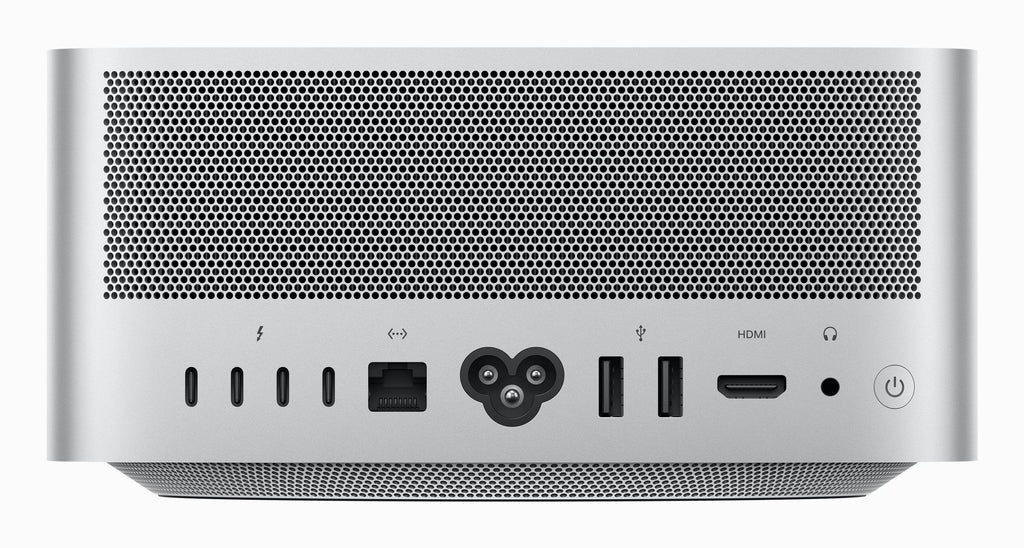 El Mac Studio se adelanta a tus necesidades con 12 puertos de alto rendimiento, porque a práctico tampoco le gana nadie. Transfiere fotos y vídeos con un lector de tarjetas SDXC. Conecta televisores o monitores a la salida HDMI, que admite resoluciones de hasta 8K. Enlaza accesorios de última generación por Bluetooth 5.3 y navega hasta el doble de rápido con Wi‑Fi 6E.
