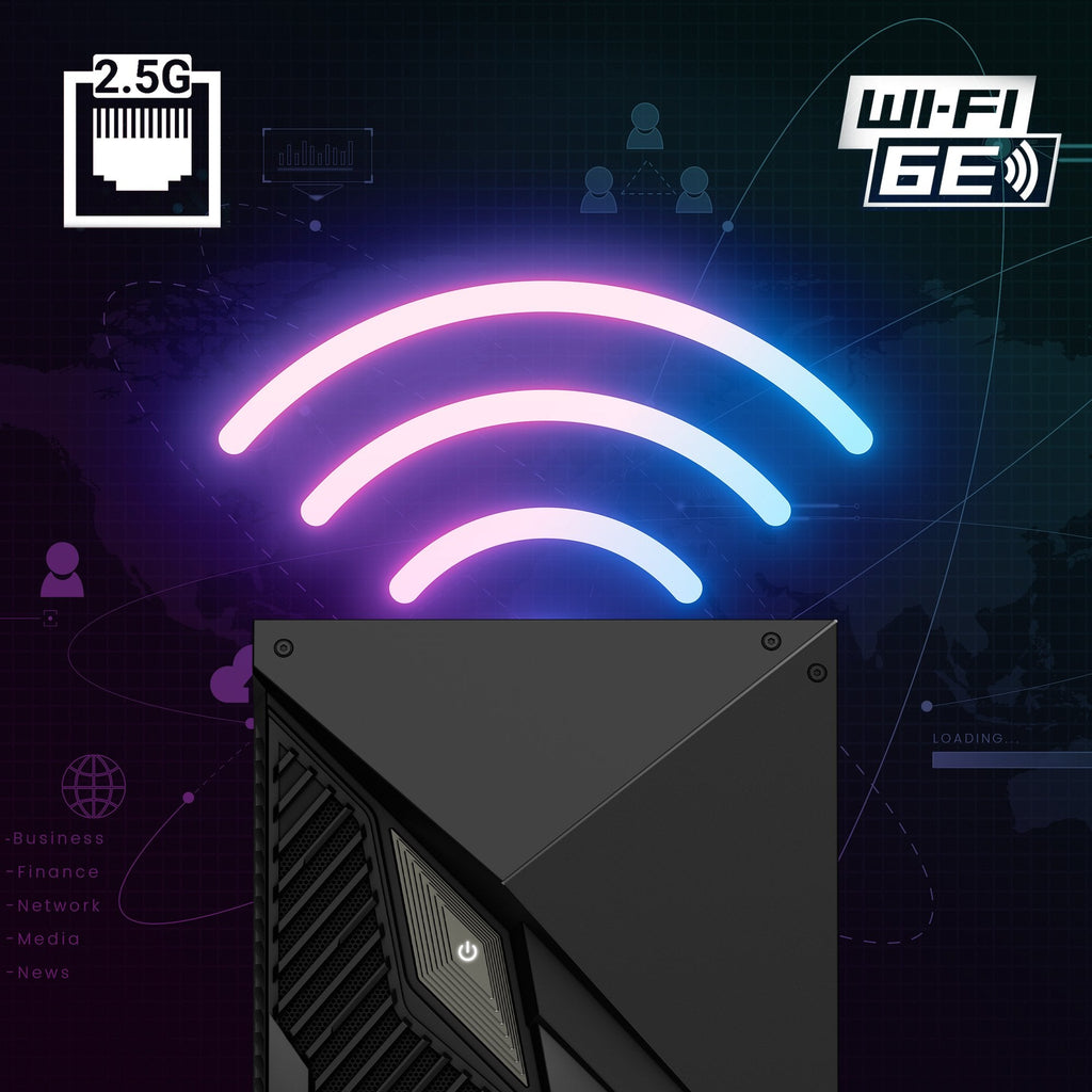 - Ethernet 2500 Mbit/s Wi-Fi 6E (802.11ax) Bluetooth 5.3