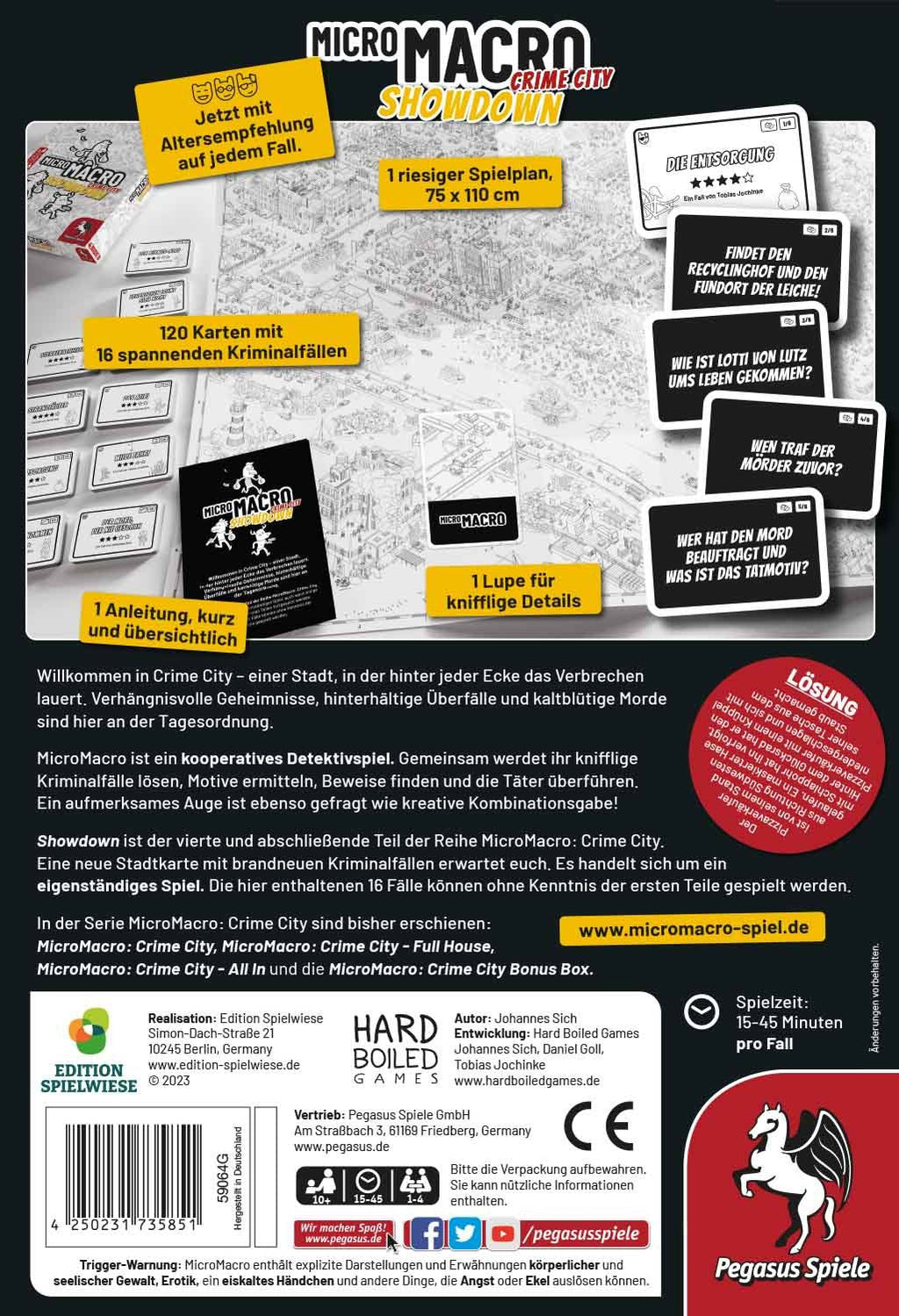 Pegasus Spiele MicroMacro: Crime City 4 – Showdown, Juego de mesa, Familia, 10 año(s), 15 min, Juego familiar