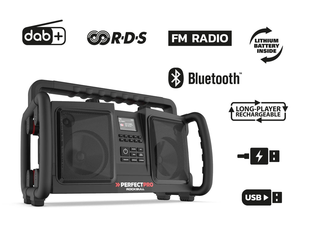 Perfectpro ROCKBULL, Portátil, DAB+, FM, 50 W, Clásico, Danza, Plano, Jazz, Rock, LCD, Negro