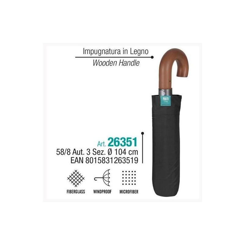 Perletti Paraguas Adulto 58/8 Aut.3 Sec. Negro Mango Madera