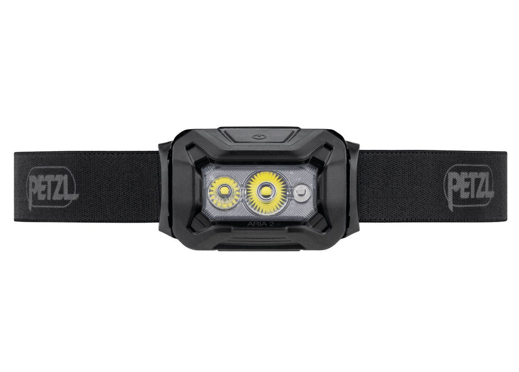 Petzl Aria 2 RGB, Linterna con cinta para cabeza, Negro, Duraluminio, Caucho, Botones, 1 m, IP67