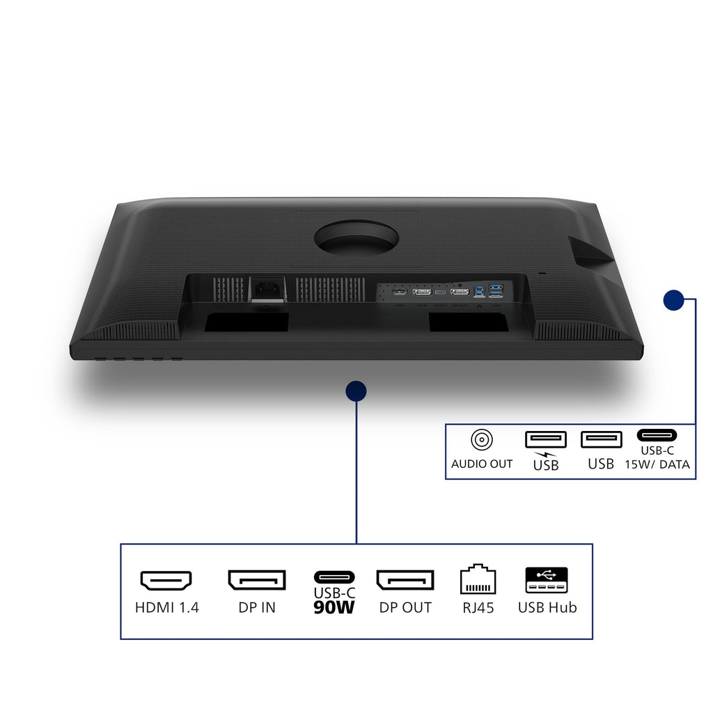 Simplifica todos los periféricos del monitor al PC mediante el conector USB Type-C con base de un solo cable, que incluye la conexión de red, la salida de vídeo de alta resolución del PC al monitor y la navegación por Internet sin necesidad de un cable de red adicional, incluso sin puerto LAN en el portátil. La conexión RJ45 a través de USB-C ofrece una conexión rápida y segura cuando sea necesaria. La obtención de las velocidades de transferencia de datos más altas te permite transferir datos desde un disco duro a tu PC con mayor rapidez que nunca. Además, el USB-C con suministro de energía te permite incluso alimentar y cargar tu portátil desde el monitor, con lo que se elimina la necesidad de utilizar cables de alimentación adicionales.