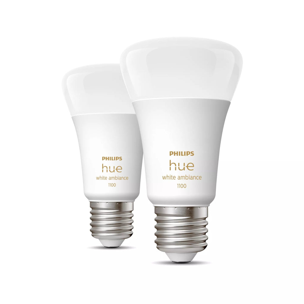 Philips Hue White ambiance Bombilla inteligente A60 - E27 - 1100 (paquete de 2), Bombilla inteligente, Bluetooth, Blanco, LED integrado, E27, A60
