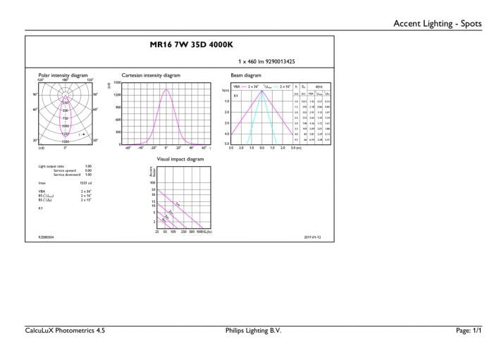 - Temperatura de color: 4000 K Ángulo de haz: 36° Índice de Entrega de Color (CRI): 97
