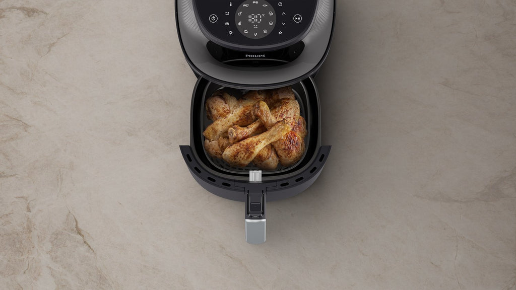 El 83 % de nuestros consumidores considera que los muslos de pollo cocinados en la Philips Airfryer serie 3000 tienen mejor sabor que los cocinados en un horno.******