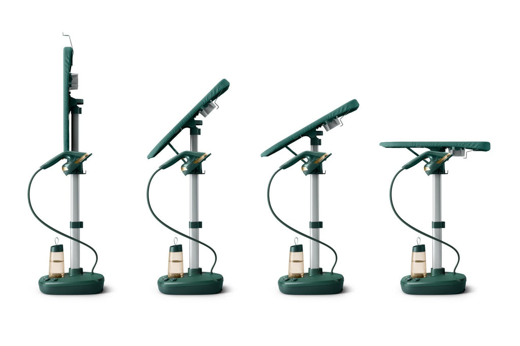 La tabla multiángulo se puede ajustar en cualquier posición para disfrutar de una experiencia cómoda: posición horizontal para planchar las telas más difíciles; vertical para planchar al vapor prendas delicadas.