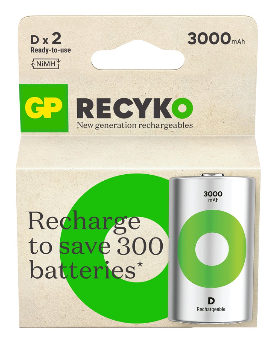 GP Batteries ReCyko Pro RECYKO D, Batería recargable, D, Níquel-metal hidruro (NiMH), 1,2 V, 2 pieza(s), 3000 mAh