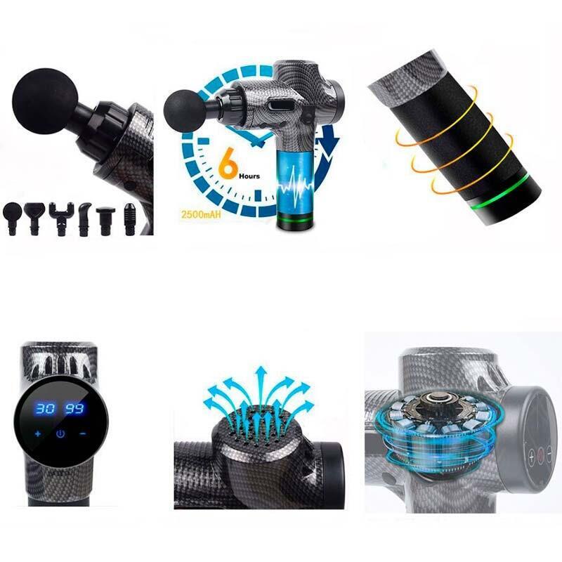 Pistola De Masaje Muscular 6 Cabezales 30 Niveles Negro