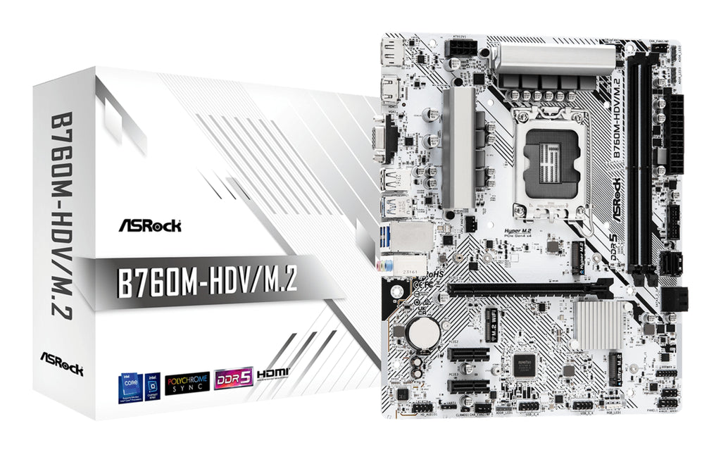 Asrock B760M-HDV/M.2, Intel, LGA 1700, Intel Core i3 12th Gen, Intel Core i3 13th Gen, Intel Core i5 12th Gen, Intel Core i5 13th Gen,..., DDR5-SDRAM, 96 GB, DIMM