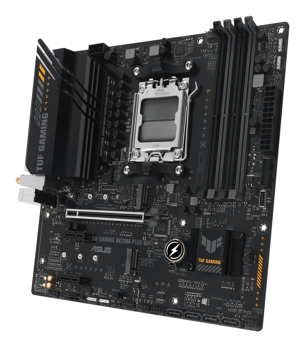 ASUS TUF GAMING A620M-PLUS WIFI, AMD, Zócalo AM5, AMD Ryzen 7000 Series, DDR5-SDRAM, 128 GB, Doble canal