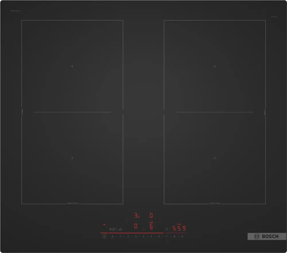 Bosch PVQ61CHB1E, Negro, Integrado, 59.2 cm, Con placa de inducción, Vidrio y cerámica, 4 zona(s)