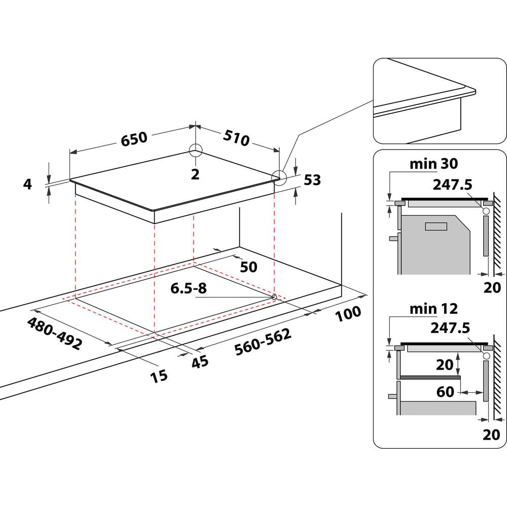 - Tamaño de la zona de cocción media(ancho x profundidad): 260 x 235 mm