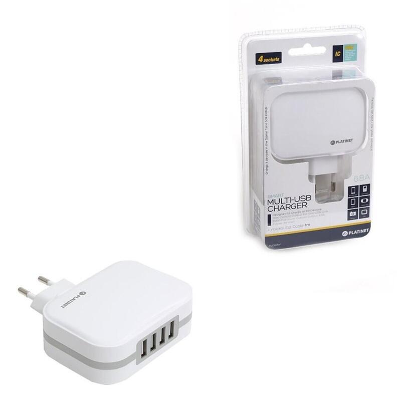 Platinet Cargador Pared 4xusb 6,8a + Cable Microusb 1m Blanco