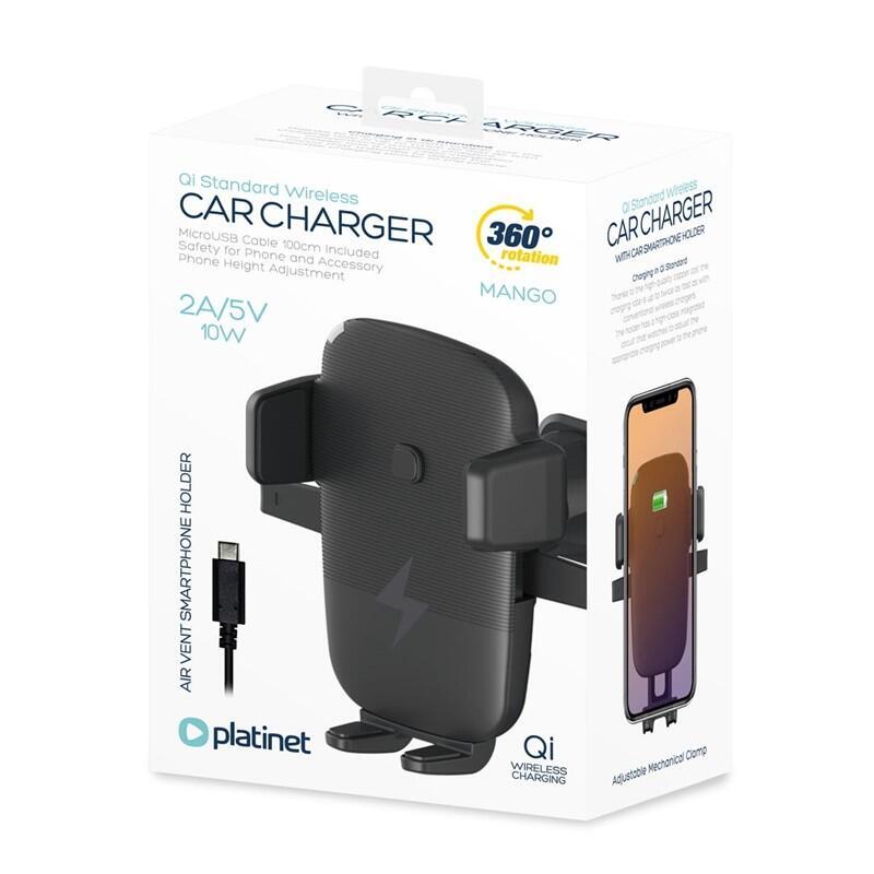 Platinet Cargador+Soporte Coche Carga Inalambrica Qi 2a/5v/10w