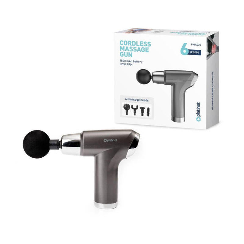 Platinet Pistola Masajeadora 1200mah 1800-3200rpm 4 Cabezales